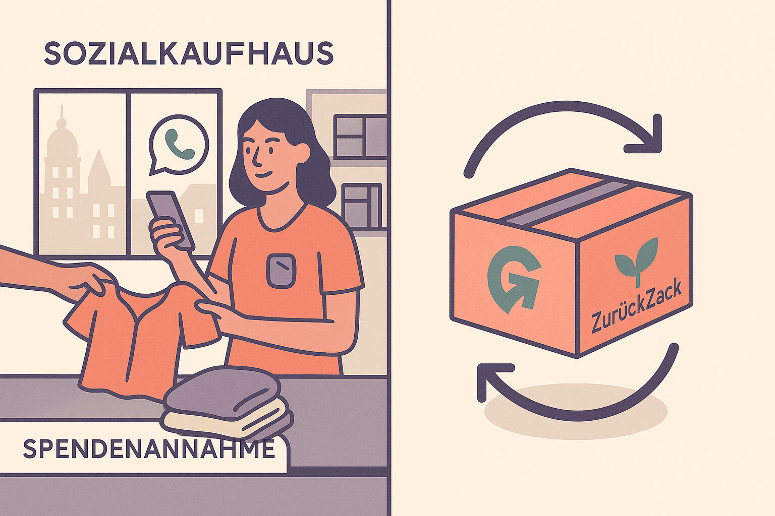 Schreib uns per WhatsApp oder über das Formular – egal ob Retoure, Spende oder beides.🚗 Wir kommen vorbei.